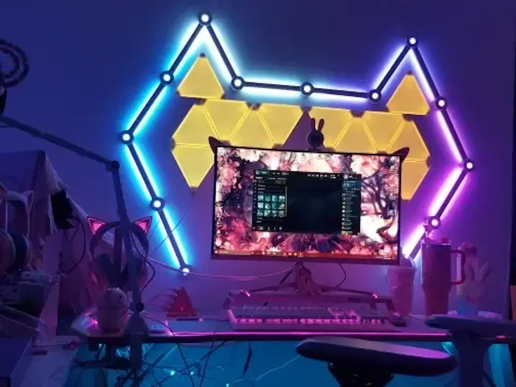 Elevate your gaming and bedroom vibe with this sleek, super thin LED Triangle Lamp โ featuring vibrant RGB colors, WiFi & Bluetooth control via app, and customizable lighting effects.